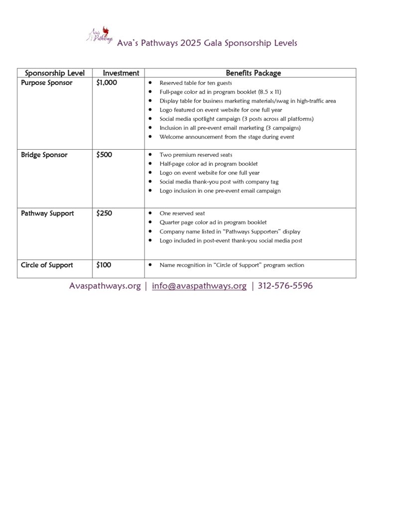 Reserve & Sponsor Sponsorship Levels for 2025 Gala